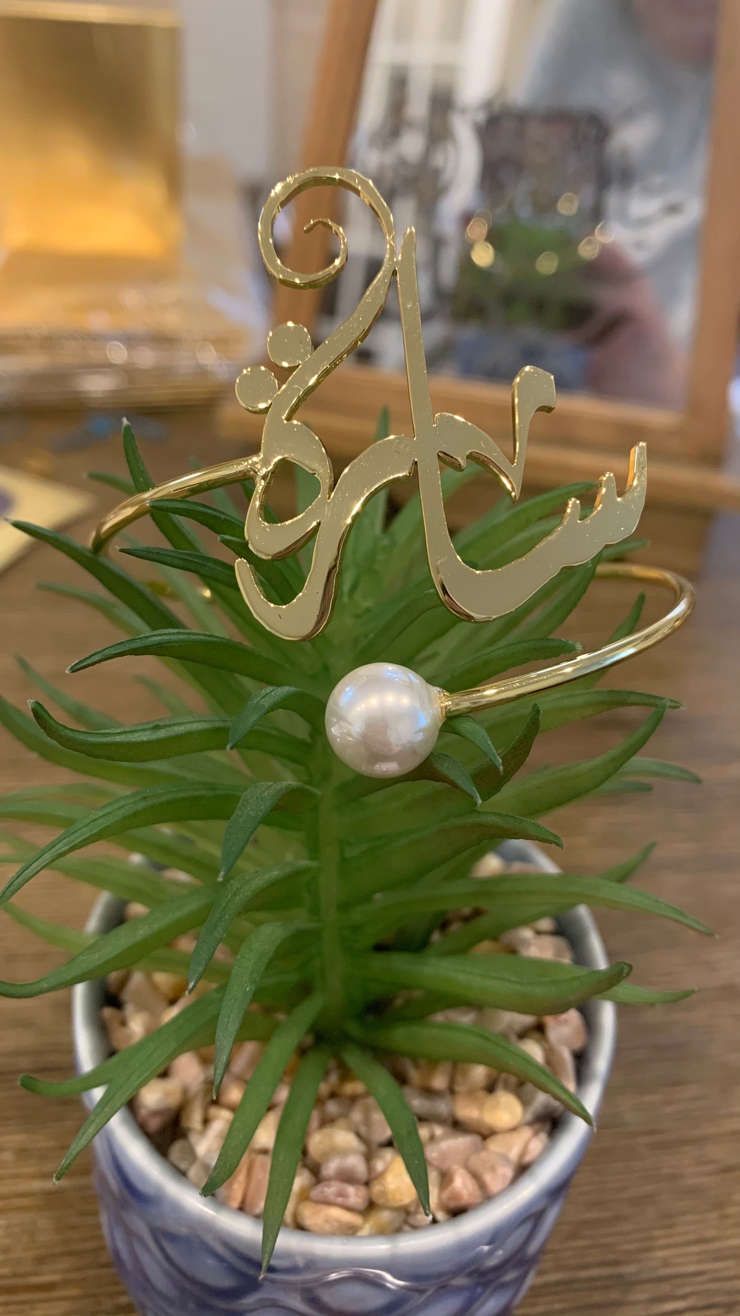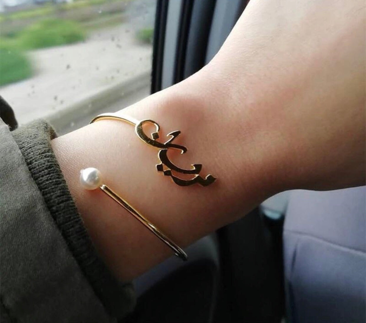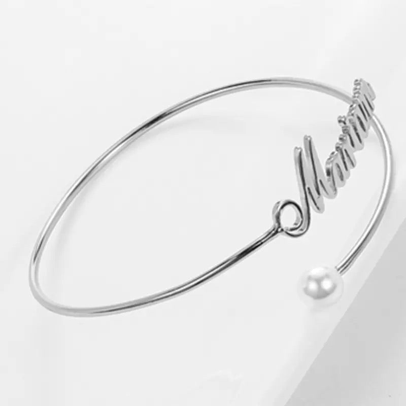Arabic or English name custom bangle bracelet with pearl